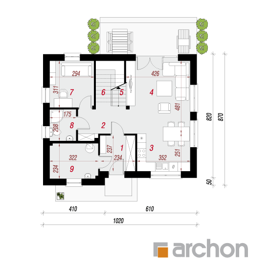 - Powierzchnia działki 482m2 powierzchnia domu 117m2